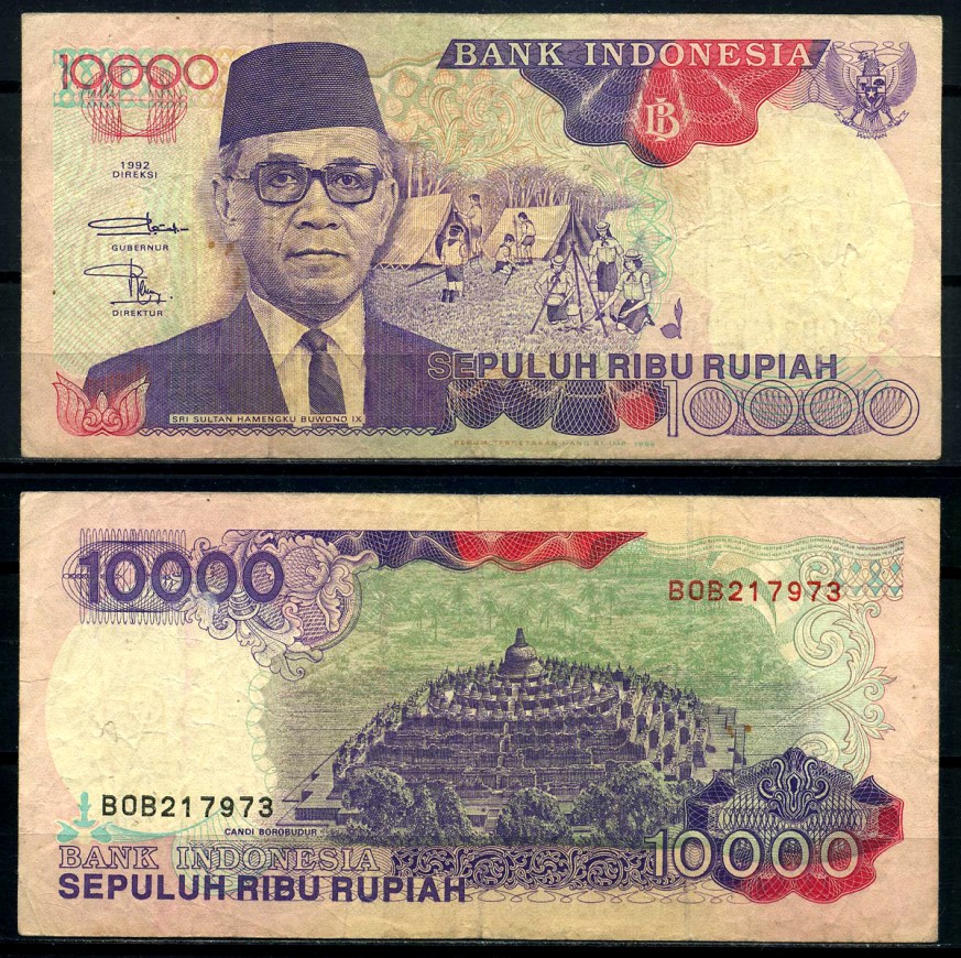 Индонезия 10000 рупий 1992/1996 Sri Sultan Hamengku Buwono IX, girl scouts Pick 131e бумага 8621-21-2-1