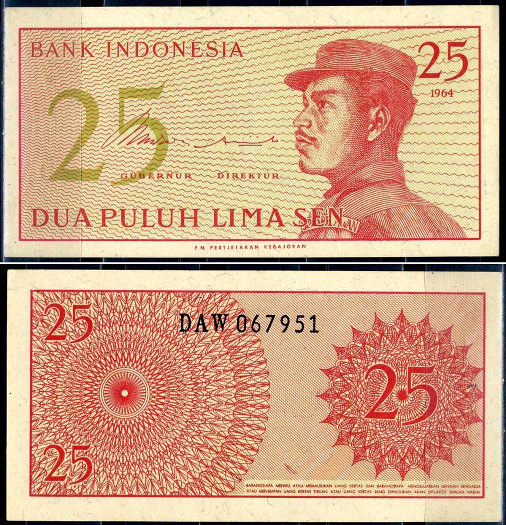 Индонезия 25 сен 1964 Pick 93 бумага UNC (пресс) 6266-2-4-2