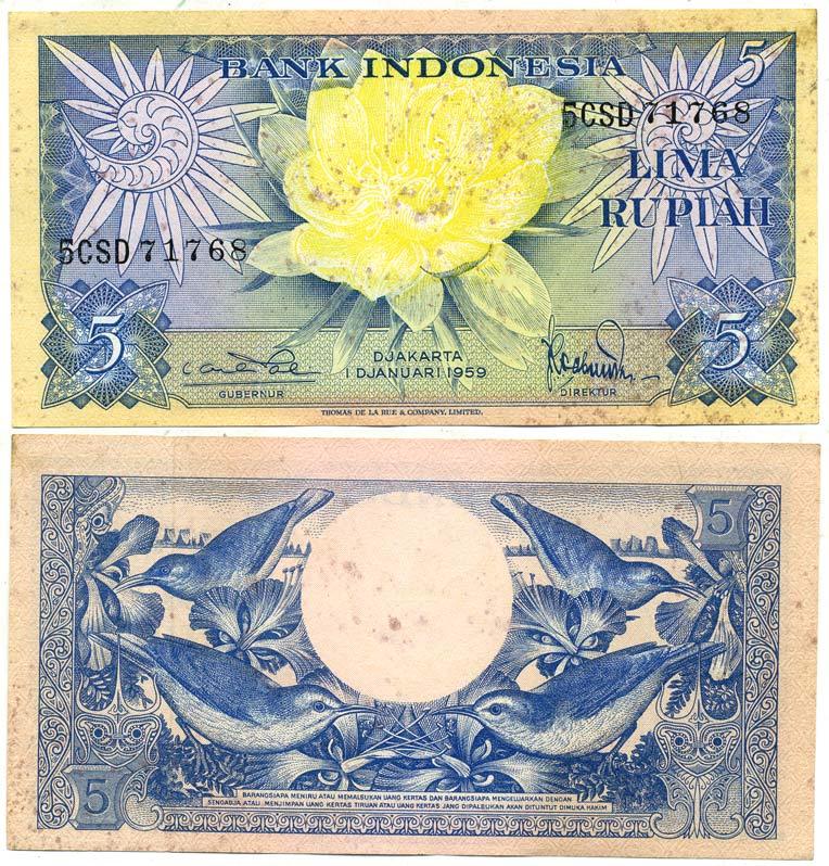 ИНДОНЕЗИЯ 5 РУПИЙ 1959 Pick 65 бумага 7548-78-2