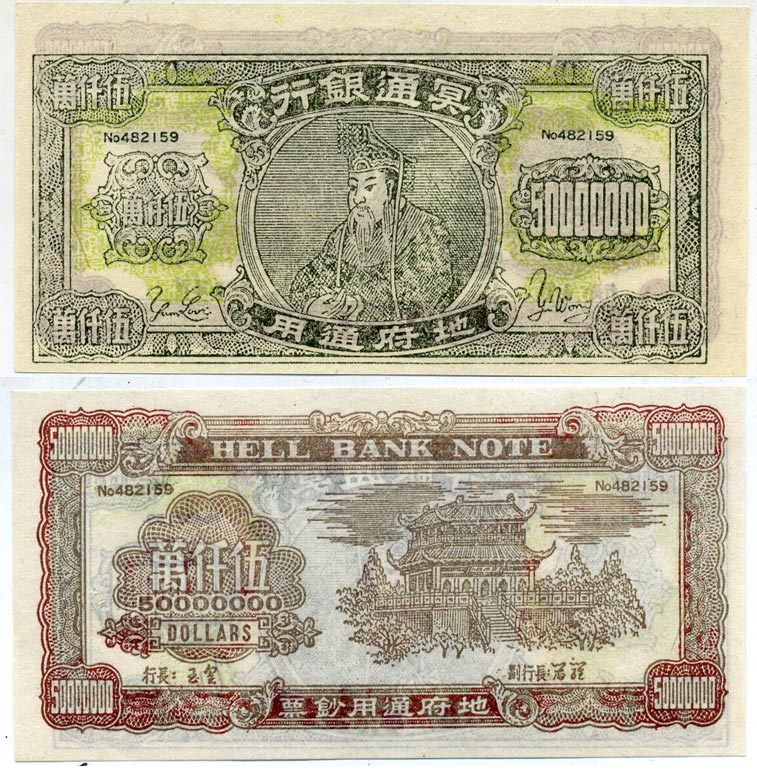 КИТАЙ 50000000 ДОЛЛАРОВ ND HELL BANK NOTE, ПОГРЕБАЛЬНЫЕ ДЕНЬГИ бумага UNC (ПРЕСС) 7204-61-3