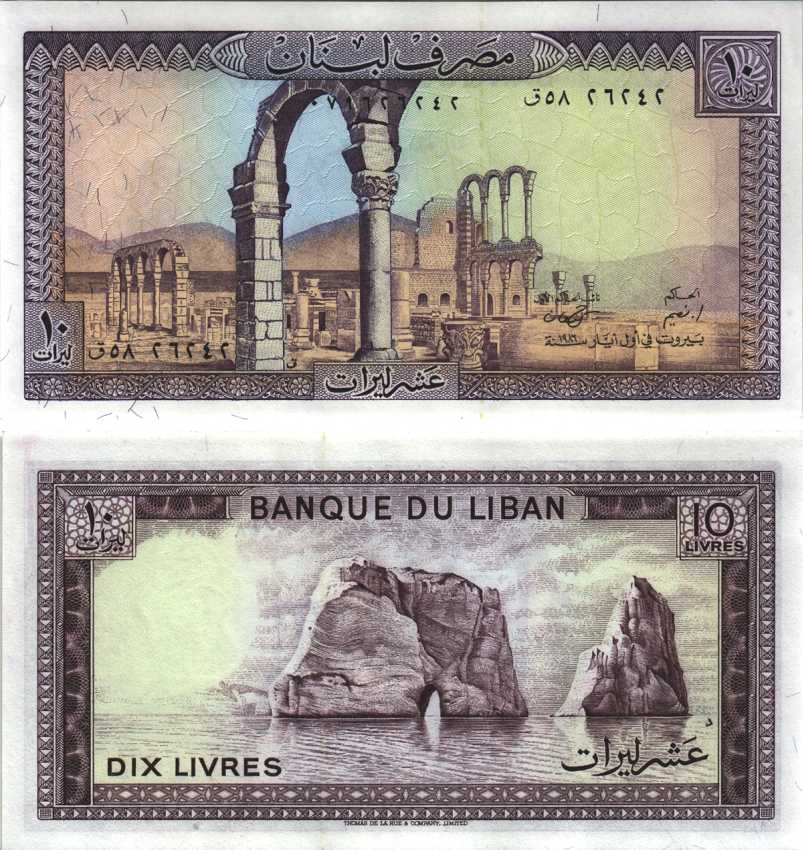 Ливан 10 ливров 1986 руины Анджара, большие камни в воде вблизи Бейрута Pick 63 f бумага UNC (пресс) 6289-59-1-1