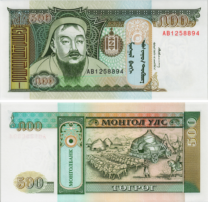 МОНГОЛИЯ 500 ТУГРИКОВ 1993 ЧИНГИС ХАН Pick 58 бумага UNC (ПРЕСС) 8604-5-2-1