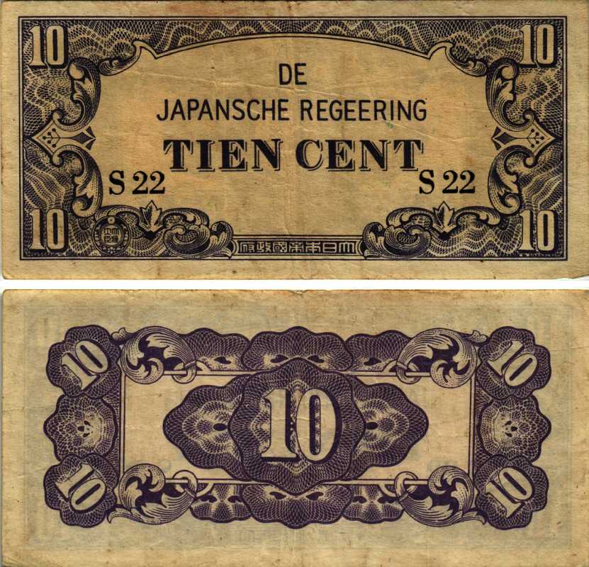 Нидерландская Индия, Японская оккупация 10 центов ND (1942) серия буквы и цифры Pick 121 a бумага 8605-41-4-2