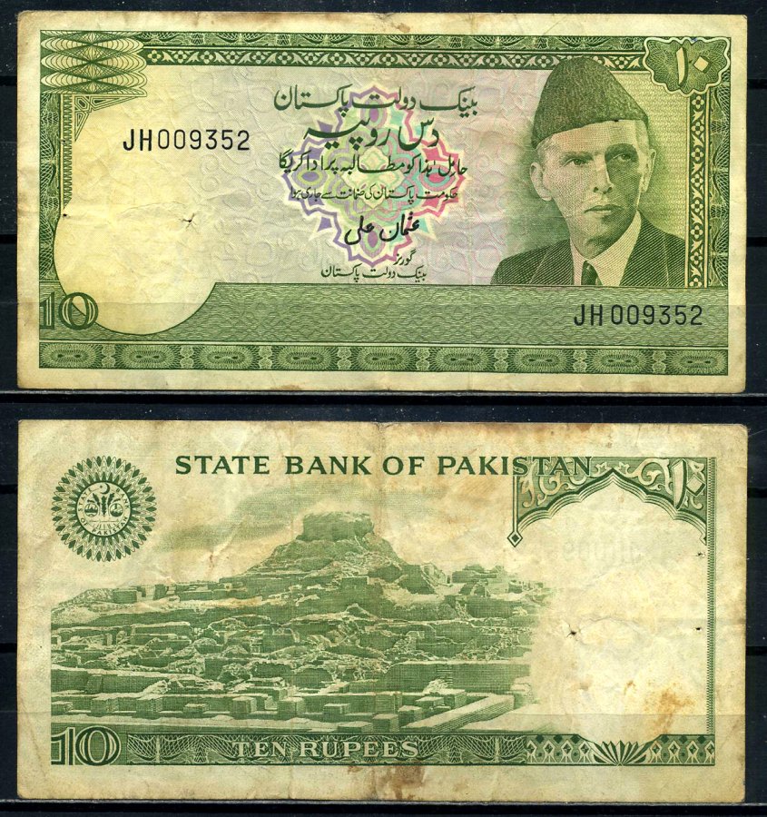 Пакистан 10 рупий 1977 Мухаммад али Джинна, signature: S. Osman Ali Pick 29(1) бумага 8590-21-2-2