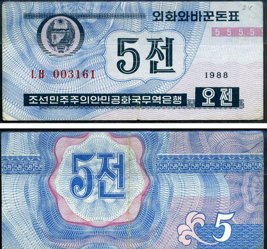 КНДР 5 чон 1988 для посетителей из капиталистических стран Pick 24 (1) бумага 7376-8-1-2
