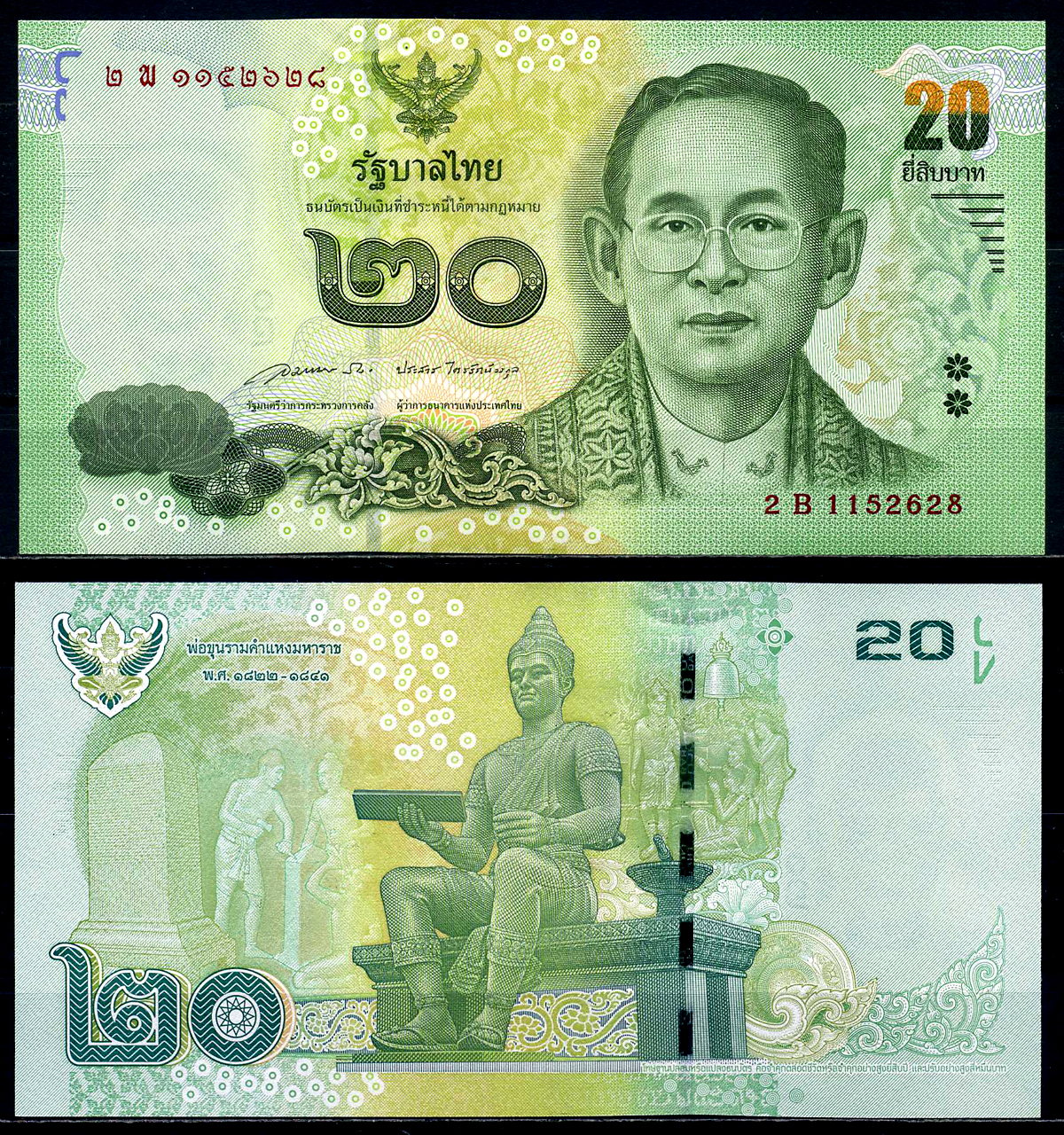 Таиланд 20 бат 2015 король Рама IX, серия 2В Pick 118 (2) бумага UNC (пресс) 446-118-2