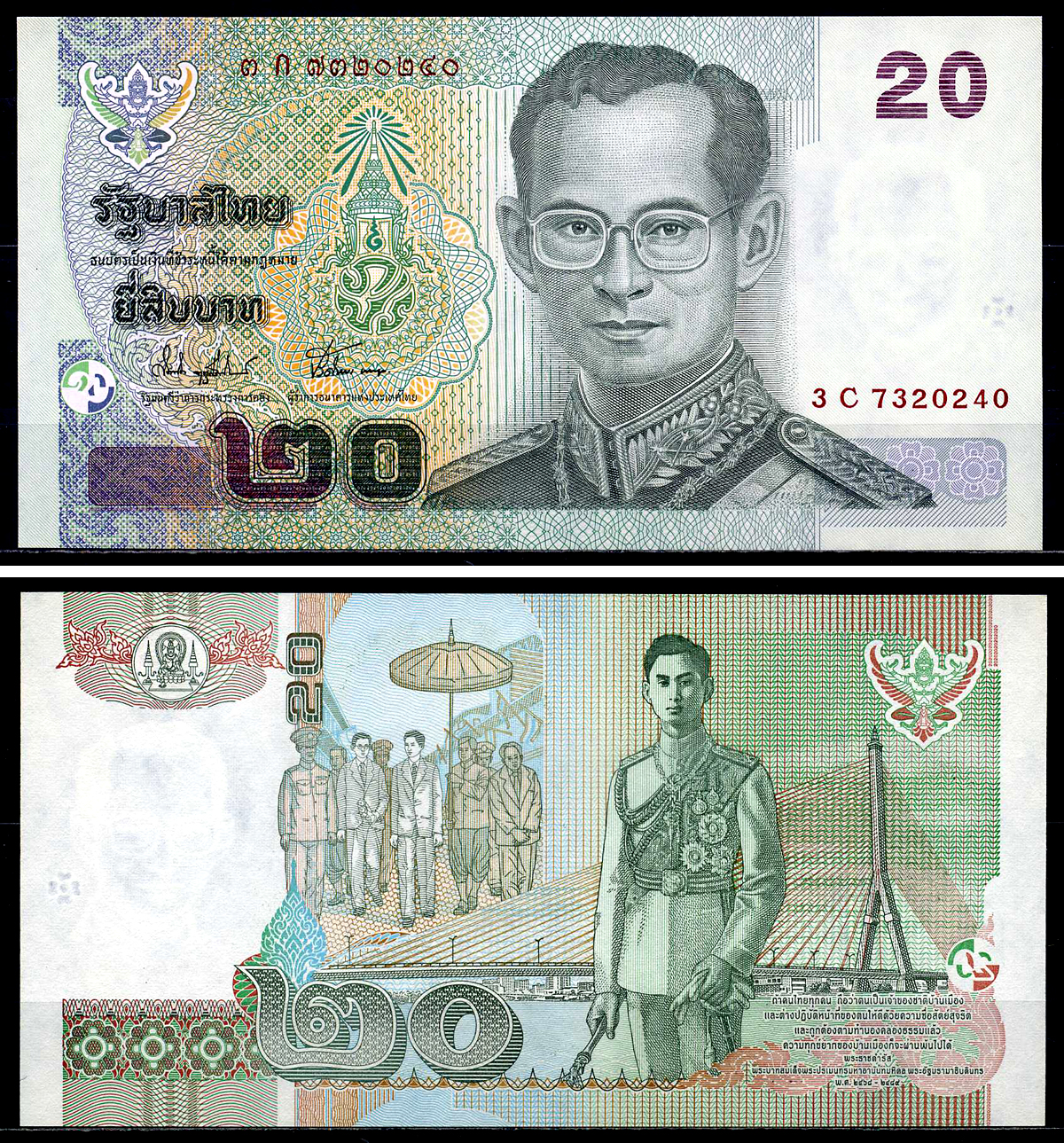Таиланд 20 бат 2003 король Рама IX, подпись 74 Pick 109 (2) бумага UNC (пресс) 446-122-1-3