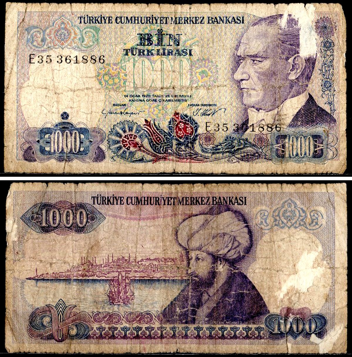Турция 1000 лир 1970 Pick 196 (1) бумага 7204-17-1-2