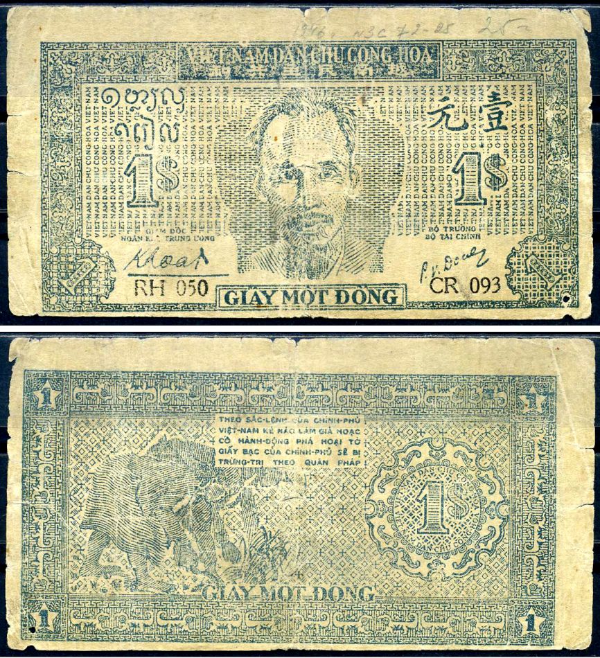 Вьетнам 1 донг ND (1947) Pick 9 бумага 7376-10-2-1