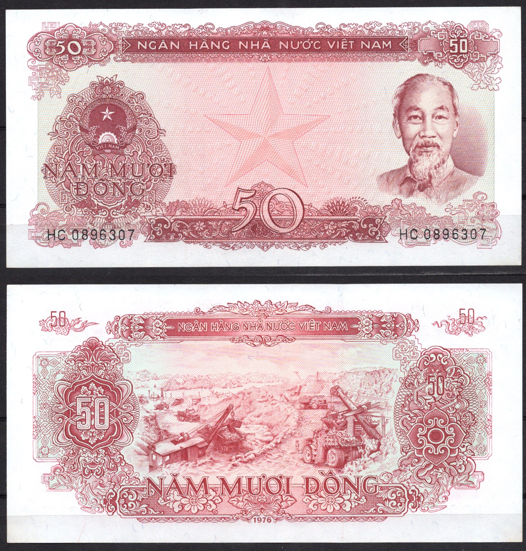 Вьетнам 50 донг 1976 Хо Ши Мин. Открытая добыча полезных ископаемых Pick 84 a бумага UNC (пресс) 7485-55-1-2
