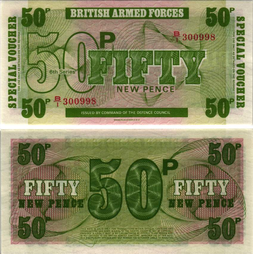 АНГЛИЯ 50 ПЕНСОВ 1972 ДЛЯ ВООРУЖЕННЫХ СИЛ, 6 СЕРИЯ, BRADBURY WILKJSON @ Co Pick M46 бумага UNC (ПРЕСС) 6287-33-1