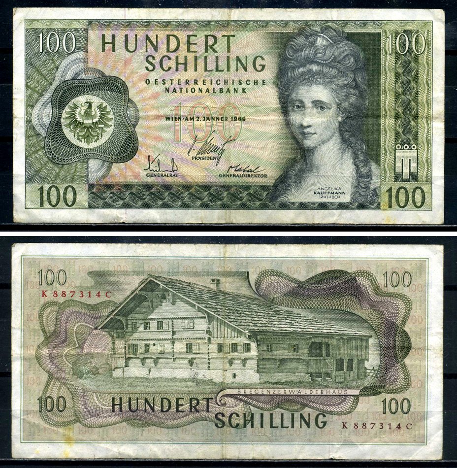 Австрия 100 шиллингов 1969 Анжелика Кауфманн, "Монфор" герб Форарльберга Pick 145a бумага 8590-3-2-2