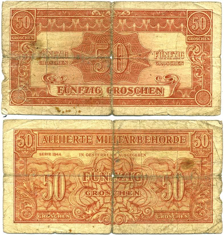 Австрия, Союзные военные власти 50 грошей 1944 Allierte Militaerbehoerde Pick 102 b бумага 3295-6-3-1
