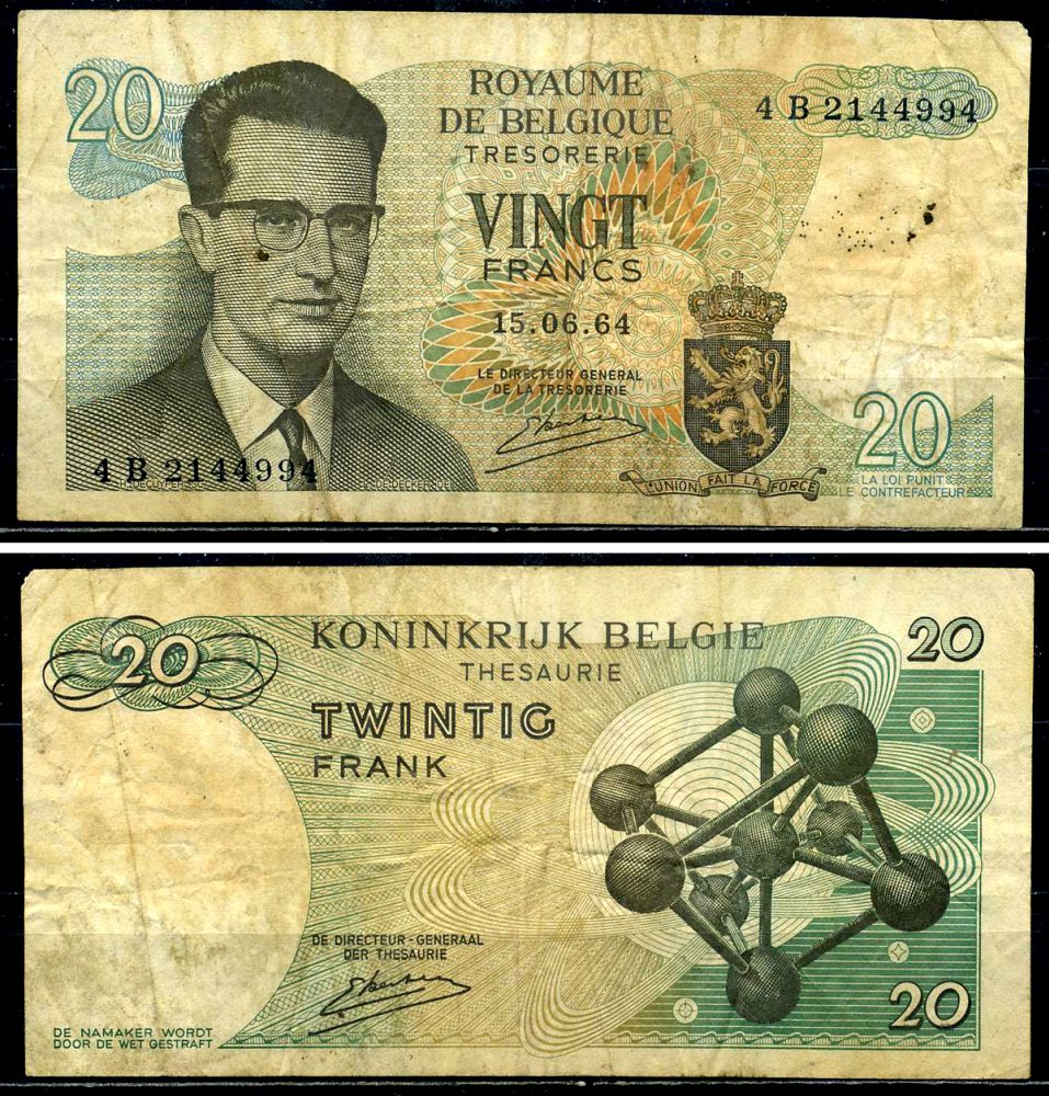 Бельгия 20 франков 1964 Бодуэн I, атомиум, Kestens Pick 138 (3) бумага 6299-44-3-2