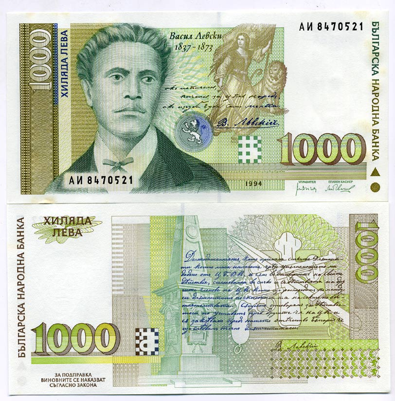 Болгария 1000 левов 1994 Васил Левский, монумент Pick 105 a бумага UNC (пресс) 450-16-2