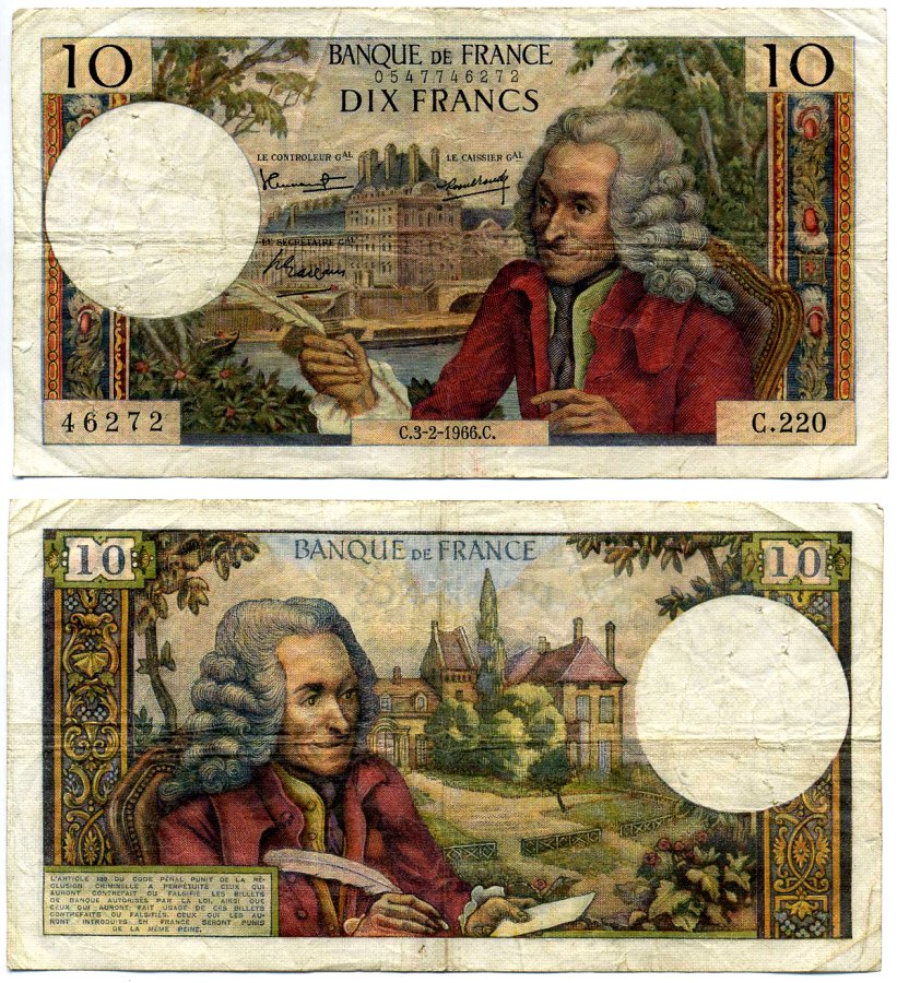Франция 10 франков 1966 3 февраля 1966, signatures: Morant / Gargam / Tondu, Вальтер Pick 147b бумага 7215-9-1-1