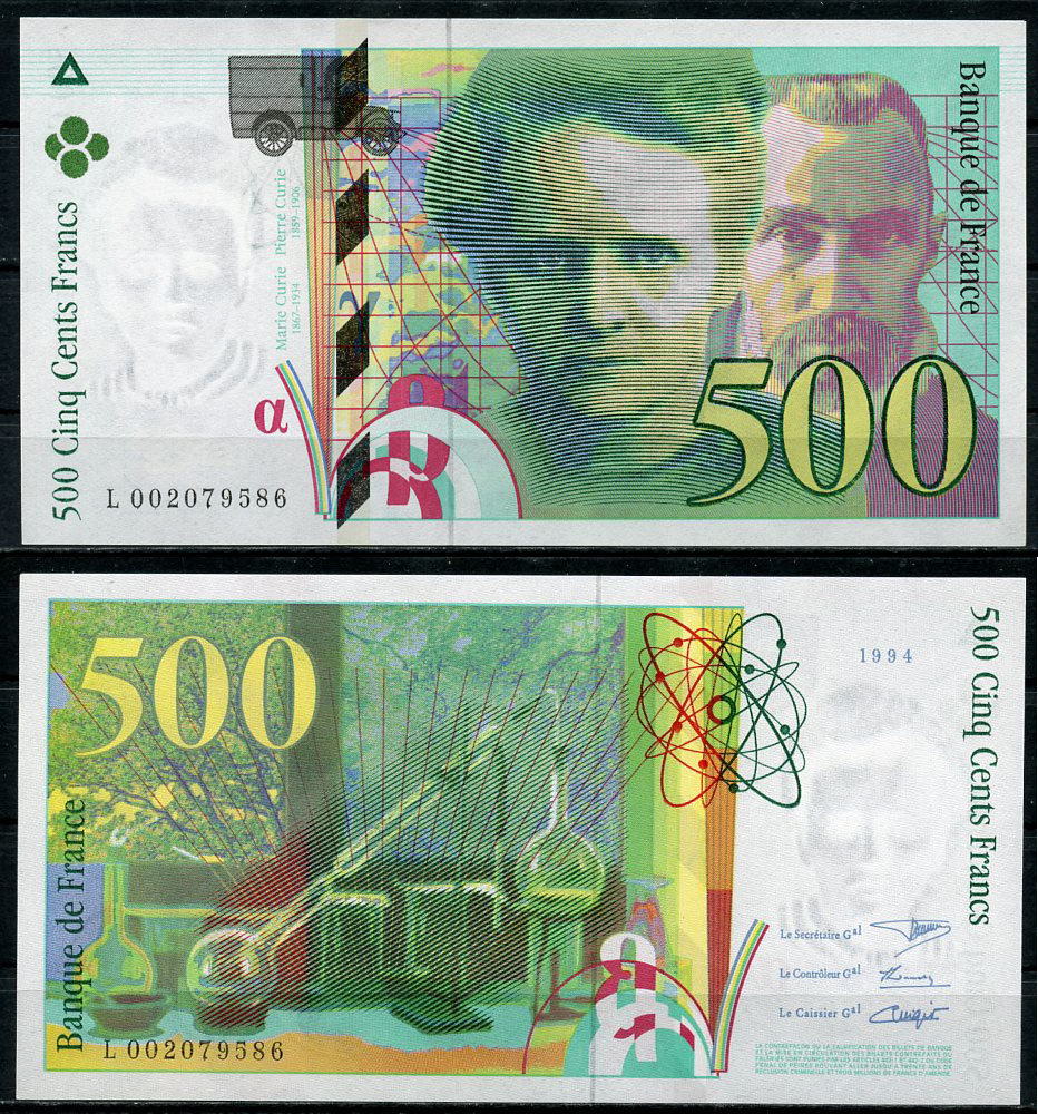 Франция 500 франков 1994 Мари и Пьер Кюри, лабораторная посуда Pick 160 a бумага UNC (пресс) 451-770-2