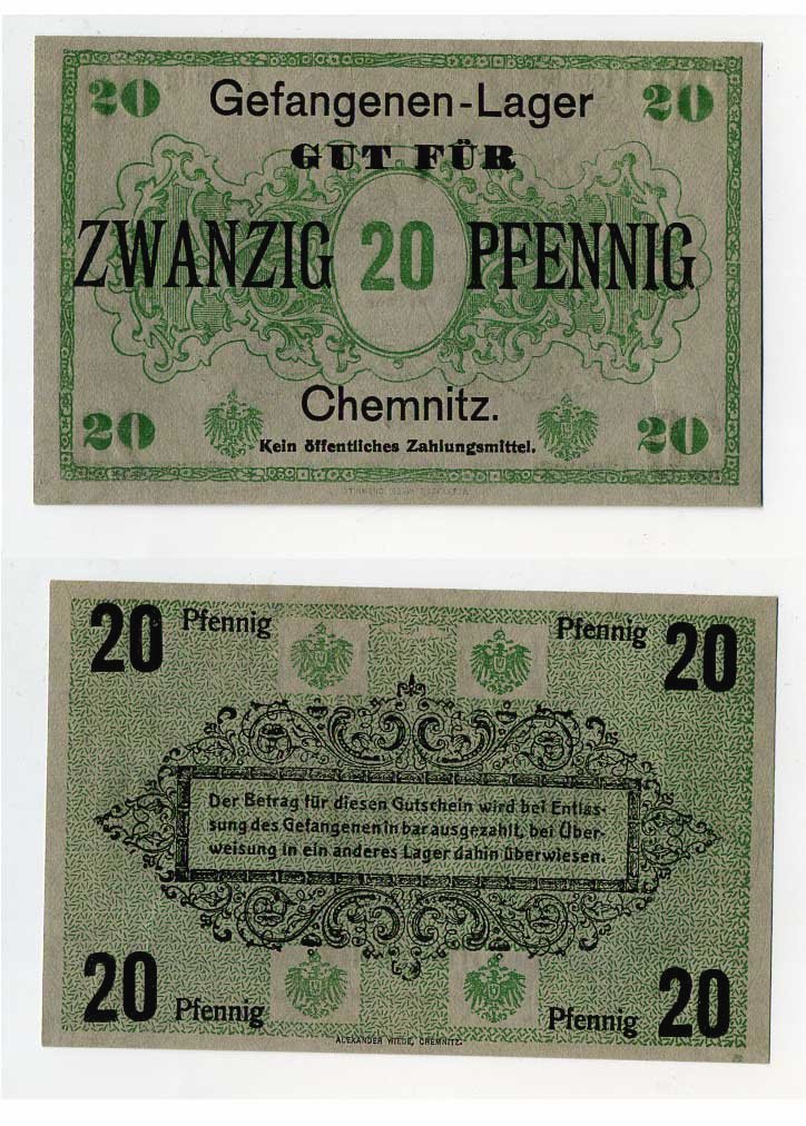 ГЕРМАНИЯ 20 ПФЕННИГОВ ND ЛАГЕРЬ ВОЕННОПЛЕННЫХ В КЕМНИЦЕ C-2814 бумага UNC (пресс) 504-80-3-2