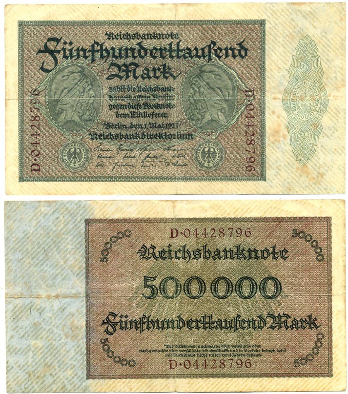 ГЕРМАНИЯ 500000 МАРОК 1923 НОМЕР ВОСЬМИЗНАЧНЫЙ, СЕРИЯ D Pick 88a, Розенберг 87d бумага 7218-18-2