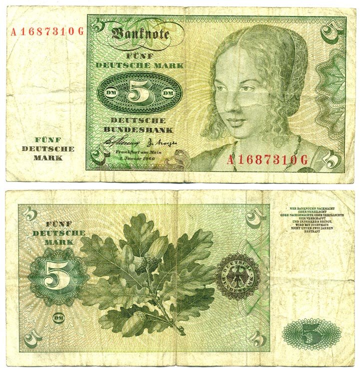 ФРГ 5 МАРОК 1960 Pick 18a бумага 7146-10-3-1