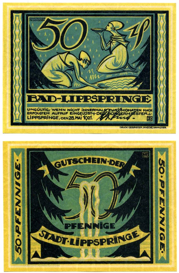 Бад-Липпшпринге 50 пфеннигов 1921 28 мая 1921, нотгельд, земля Северный Рейн-Вестфалия Grabowski 805.1 бумага 2195-26-1-2