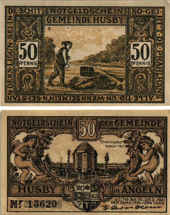 ХЮСБИ 50 ПФЕННИГОВ 1921 НОТГЕЛЬД, 1921 - 15 ДЕКАБРЯ 1921, ЗЕМЛЯ ШЛЕЗВИГ-ГОЛЬШТЕЙН Grabowski 637.1а бумага 7548-117-2-3