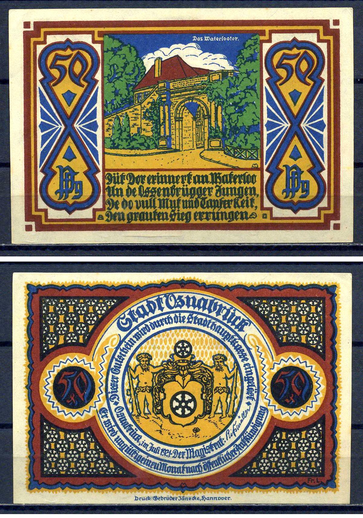 Оснабрюк 50 пфеннигов 1921 DeNG 1/2 1032.1-7/13 бумага UNC (пресс) 7556-27-3-1