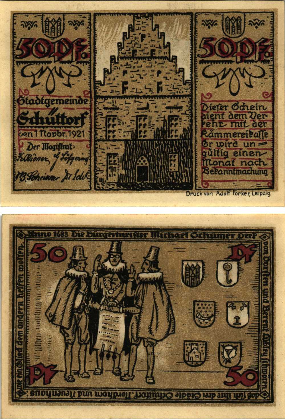 ШЮТТОРФ 50 ПФЕННИГОВ 1921 НОТГЕЛЬД, 1 НОЯБРЯ 1921, ЗЕМЛЯ НИЖНЯЯ САКСОНИЯ Grabowski 1202.1 бумага 8608-13-1-1