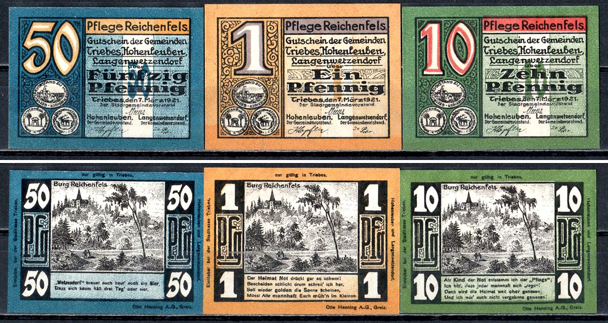 Трибес (Ройсс) набор из 3 нотгельдов 1920 7555-49-2-1