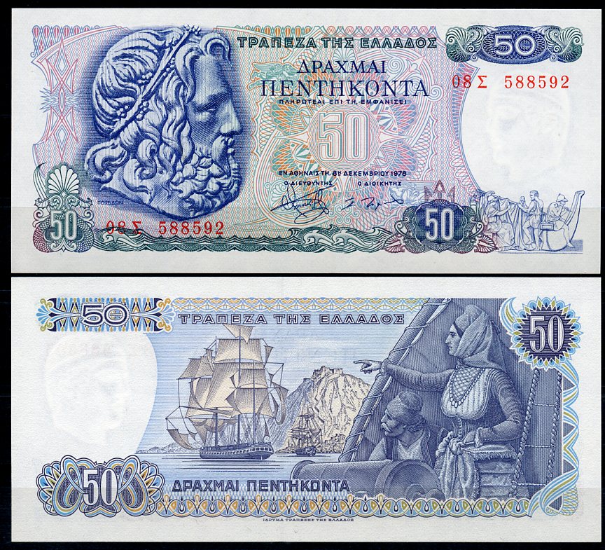 Греция 50 драхм 1978 Нептун, битва при Науплии Pick 199 бумага UNC (пресс) 7200-8-1