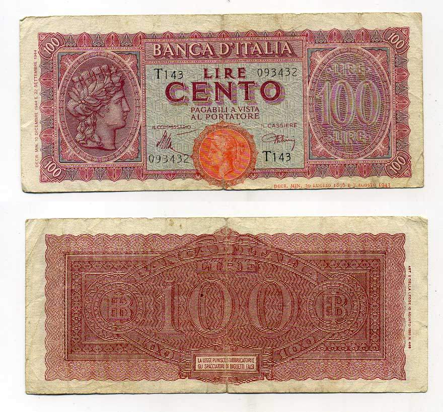 Италия 100 лир 1944 Pick 75a 450-89-2