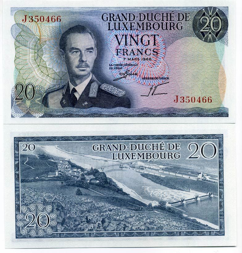 Люксембург 20 франков 1966 7 марта 1966, герцог Жан Pick 54 а бумага UNC (пресс) 450-57-2