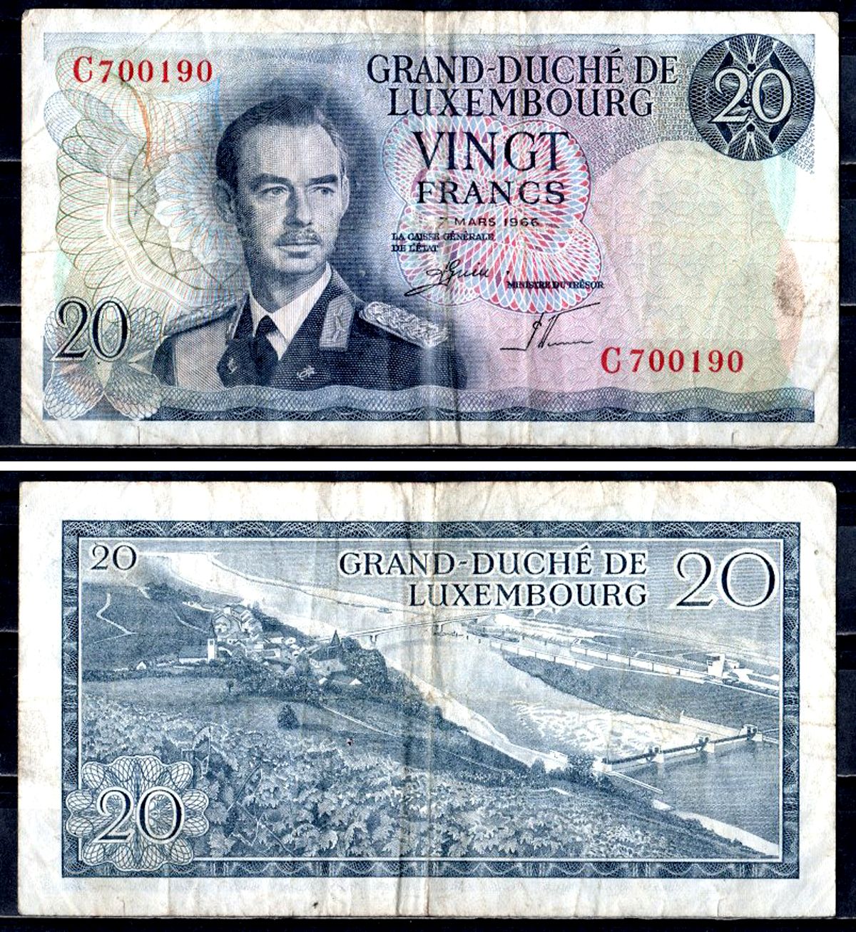Люксембург 20 франков 1966 Pick 54 a (2) бумага 6312-51-2-2
