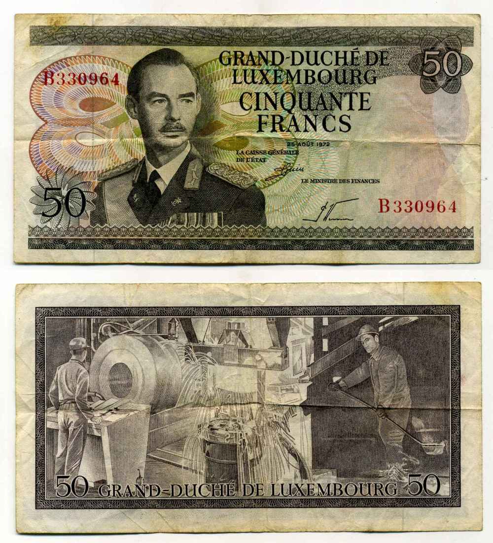 Люксембург 50 франков 1972 Pick 55а бумага 8589-16-2-1