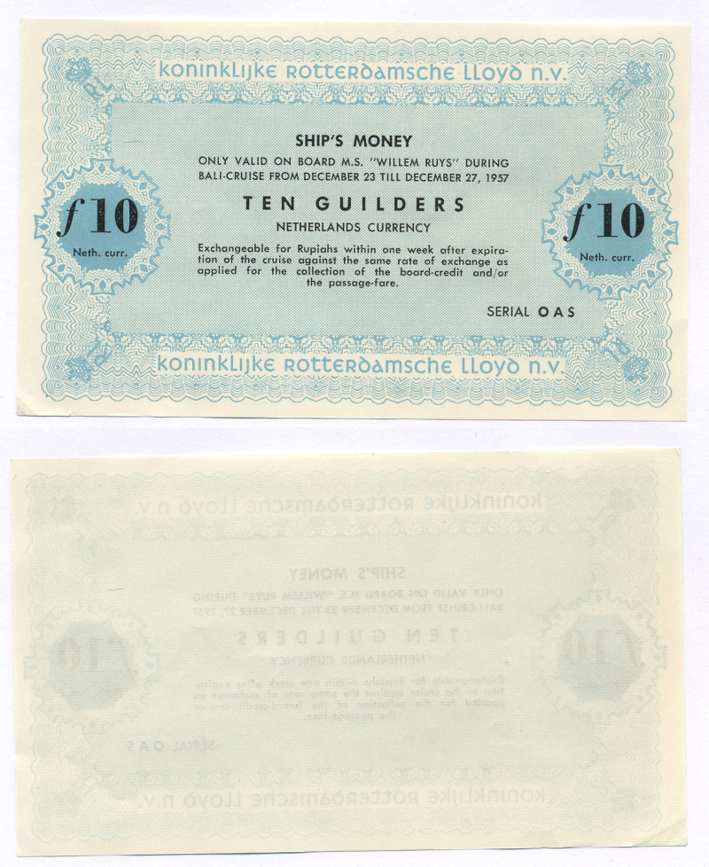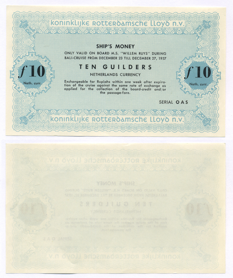 Нидерланды 10 гульденов 1957 на покупку товаров, бакалеи, гастрономии, хлеба, галантерии в магазине KONINKLIJKE ROTTERDAMSCHE LLOYD N.V бумага UNC (пресс) 444-31-1-1