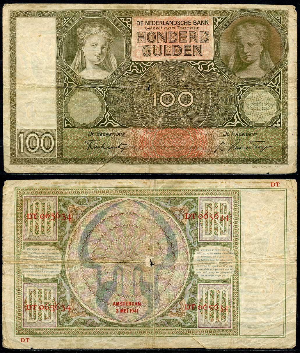 Нидерланды 100 гульденов 1941 2 мая 1941 Pick 51 b бумага 8619-15-2-1