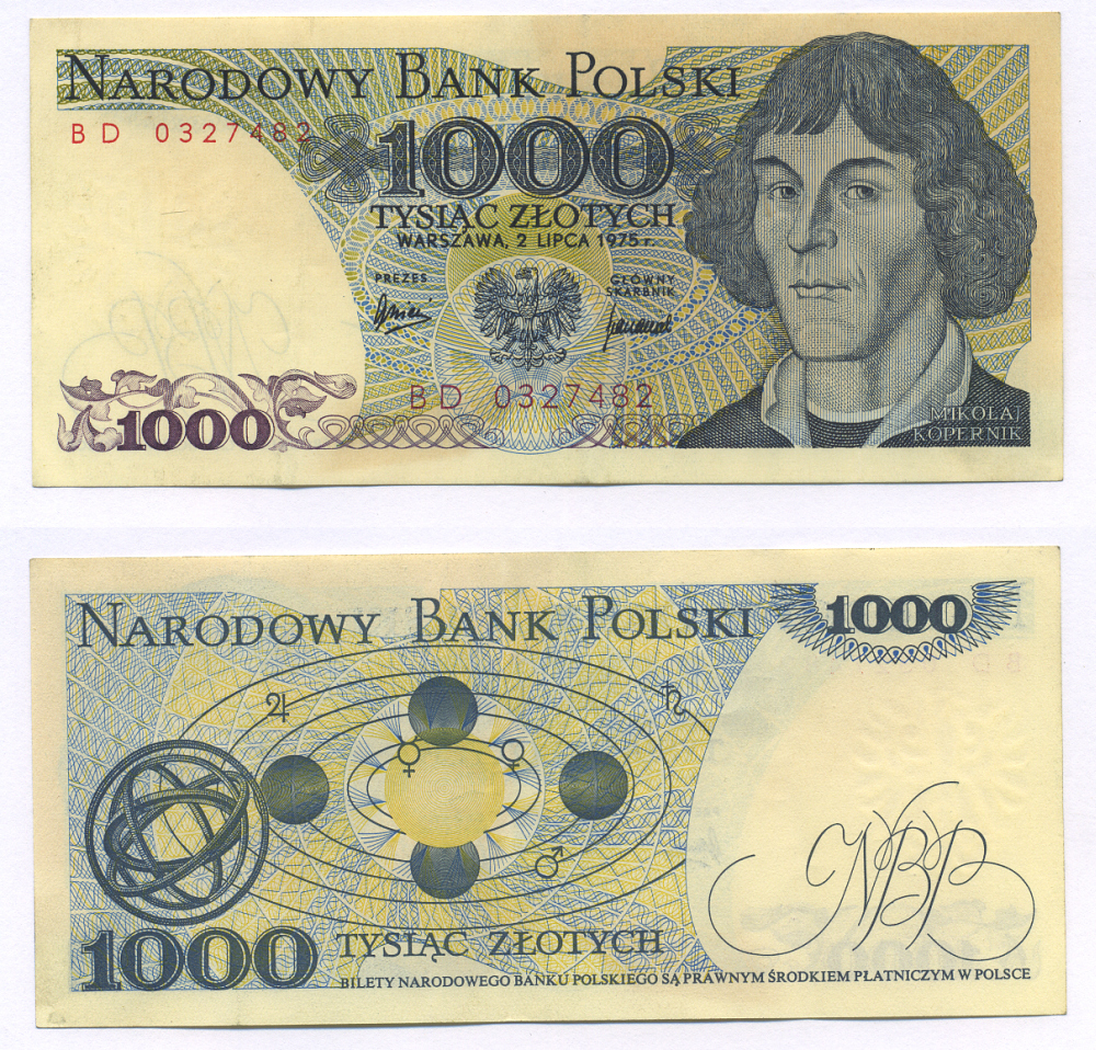 ПОЛЬША 1000 ЗЛОТЫХ 1975 2 ИЮЛЯ 1975, НИКОЛАЙ КОПЕРНИК Pick 146a бумага aUNC 7147-22-1