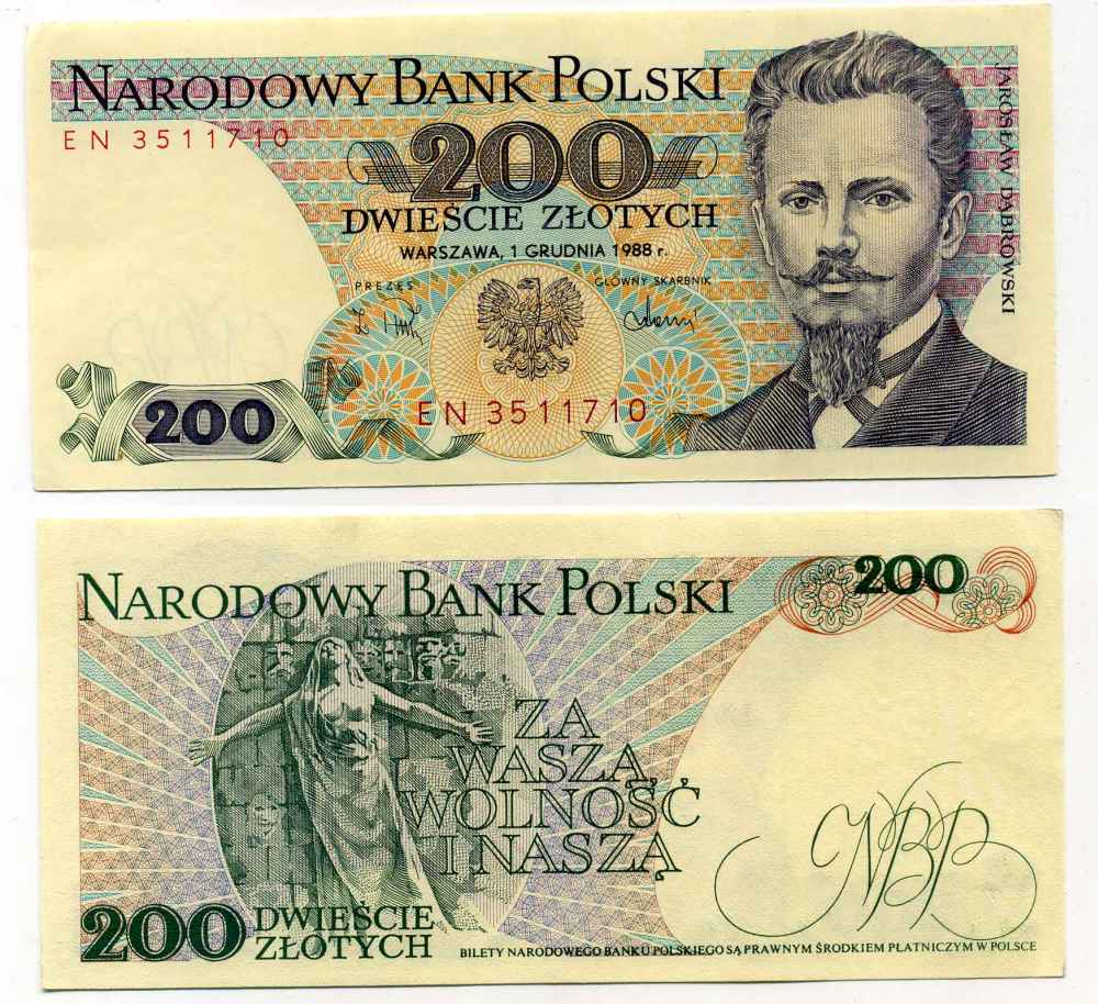 ПОЛЬША 200 ЗЛОТЫХ 1988 1 ДЕКАБРЯ 1988, ЯН ГЕНРИК ДОМБРОВСКИЙ Pick 144с бумага UNC (ПРЕСС) 8588-64-2-2
