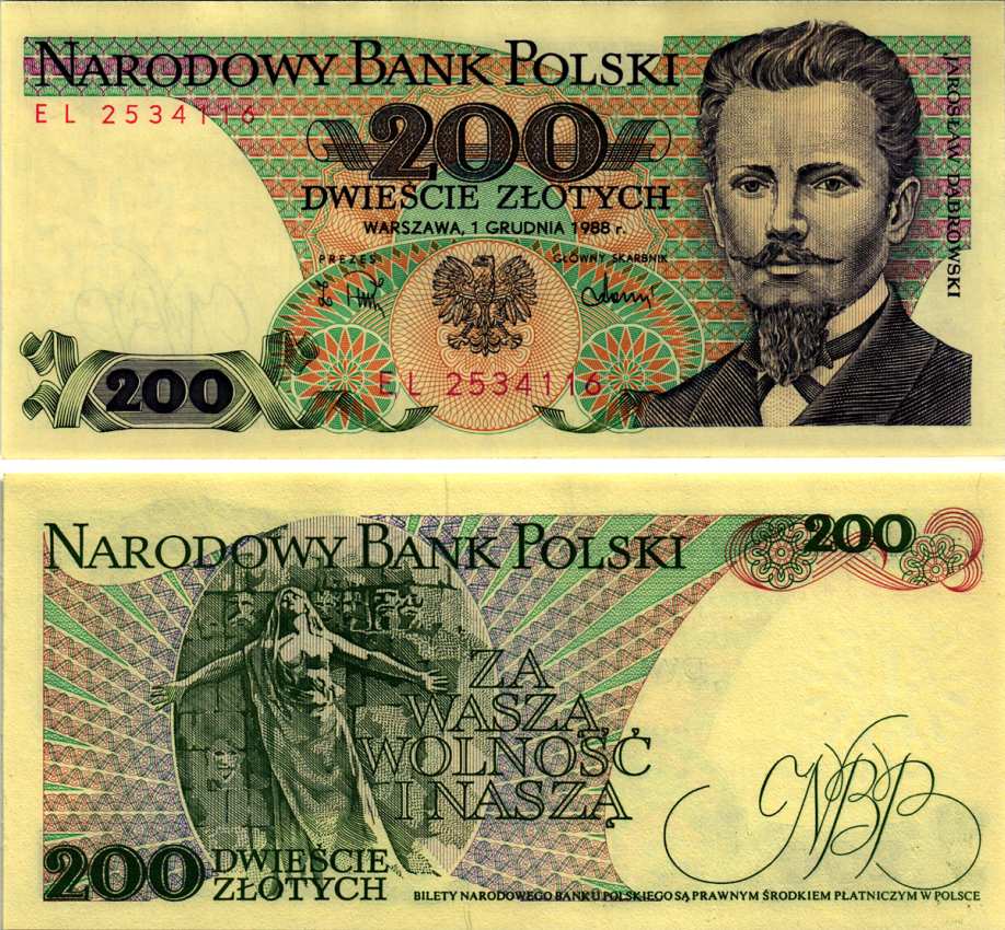 ПОЛЬША 200 ЗЛОТЫХ 1988 1 ДЕКАБРЯ 1988, ЯН ГЕНРИК ДОМБРОВСКИЙ Pick 144с бумага UNC (ПРЕСС) 8607-85-2-2