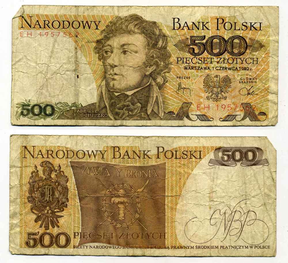 ПОЛЬША 500 ЗЛОТЫХ 1982 1 ИЮНЯ 1982, ТАДЕУШ КОСТЮШКО Pick 145d бумага 8589-3-2-2