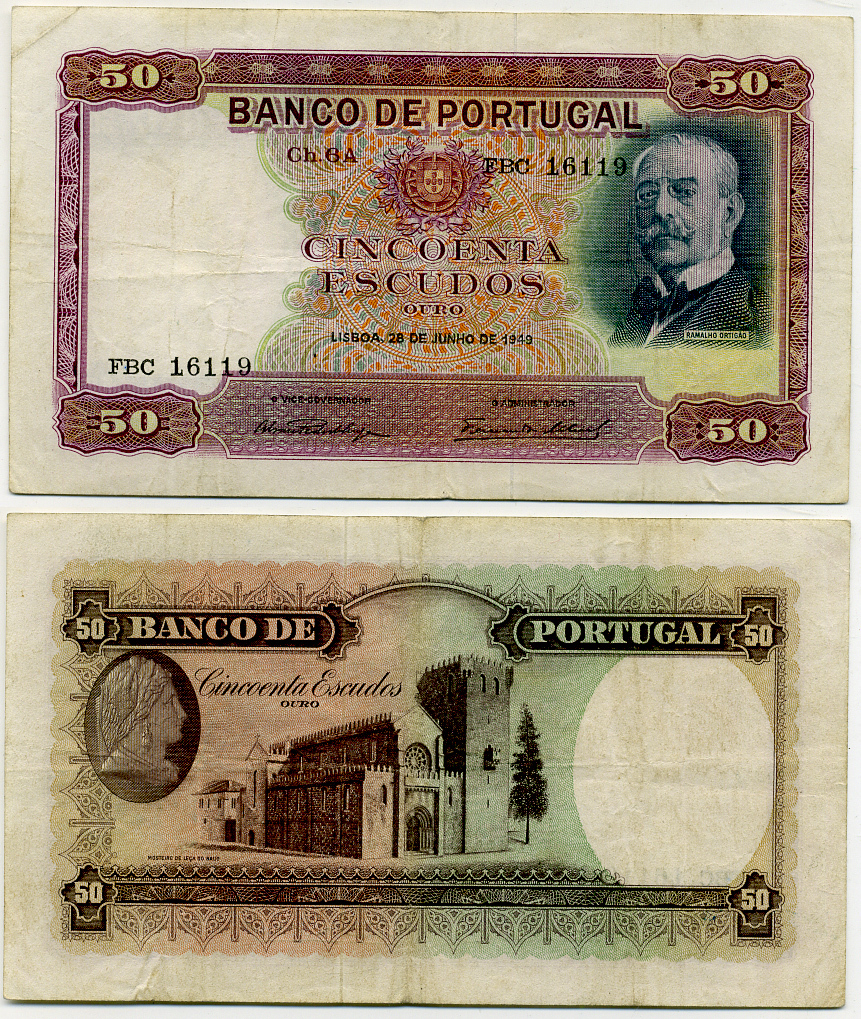 ПОРТУГАЛИЯ 50 ЭСКУДО 1949 28.06.1949, Ромальо Артигао Pick 154 бумага 8564-3-1