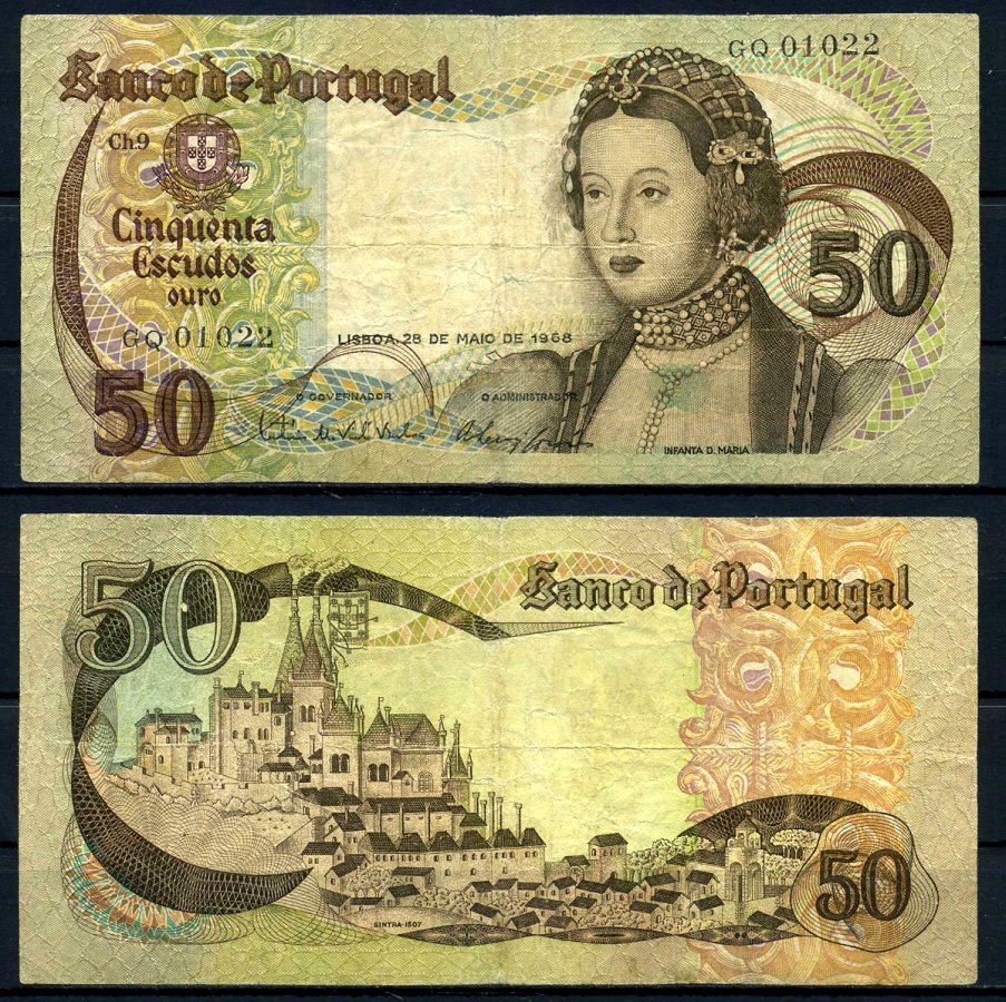 Португалия 50 эскудо 1968 Инфанта донна Мария, Синтра, Antonio Manuel Pinto Barbosa & Antonio Osorio Pereira de Castro Pick 174а(3) бумага 7204-35-2-1