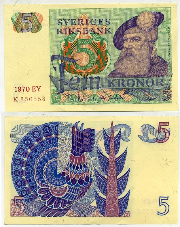 Швеция 5 крон 1970 EY, Густав I Ваза Pick 51b бумага aUNC 445-50-3