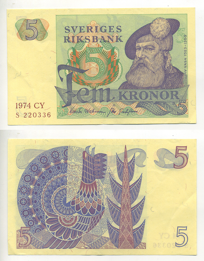 ШВЕЦИЯ 5 КРОН 1974 CY Pick 51c бумага аUNC 7214-5-1