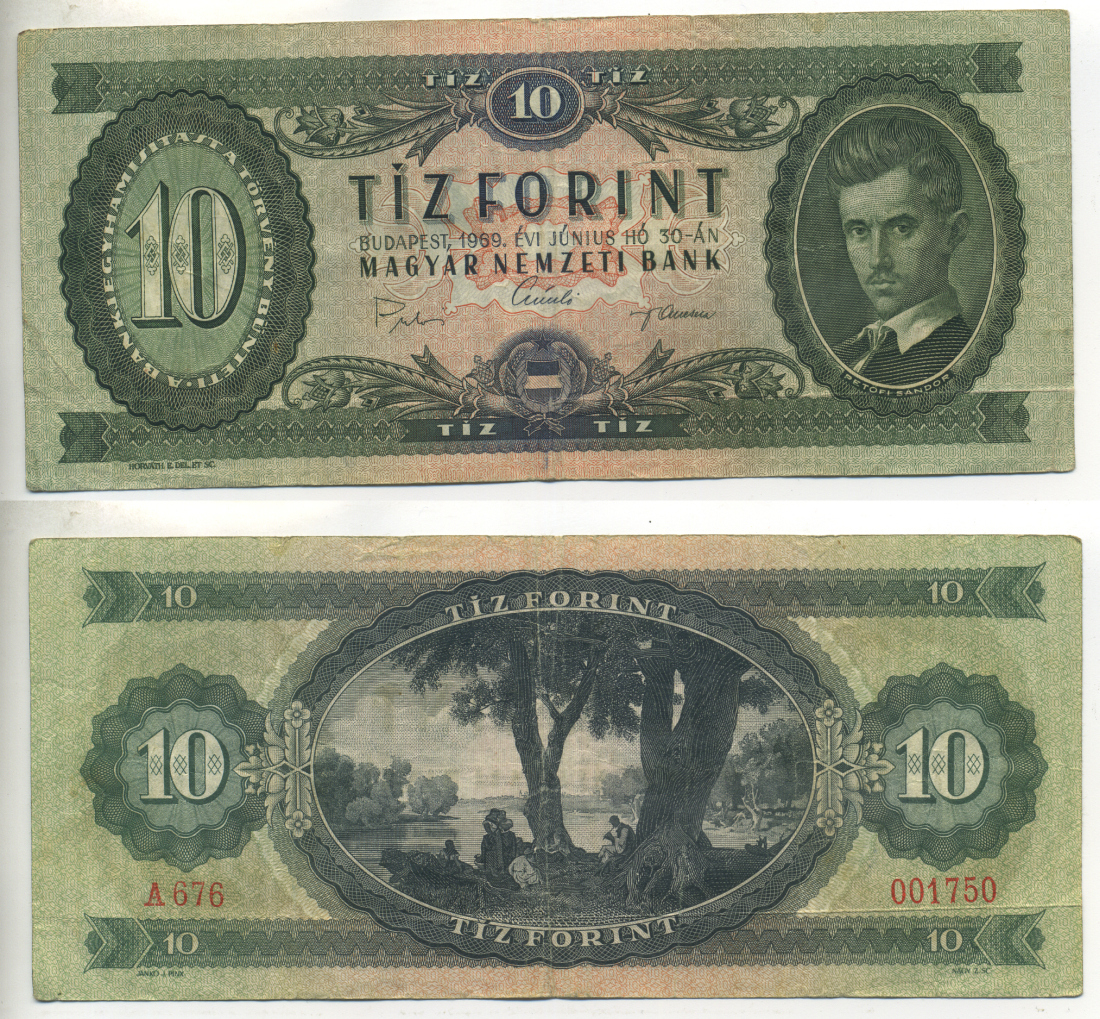 ВЕНГРИЯ 10 ФОРИНТОВ 1969 Pick 168d бумага 6317-38-3-2