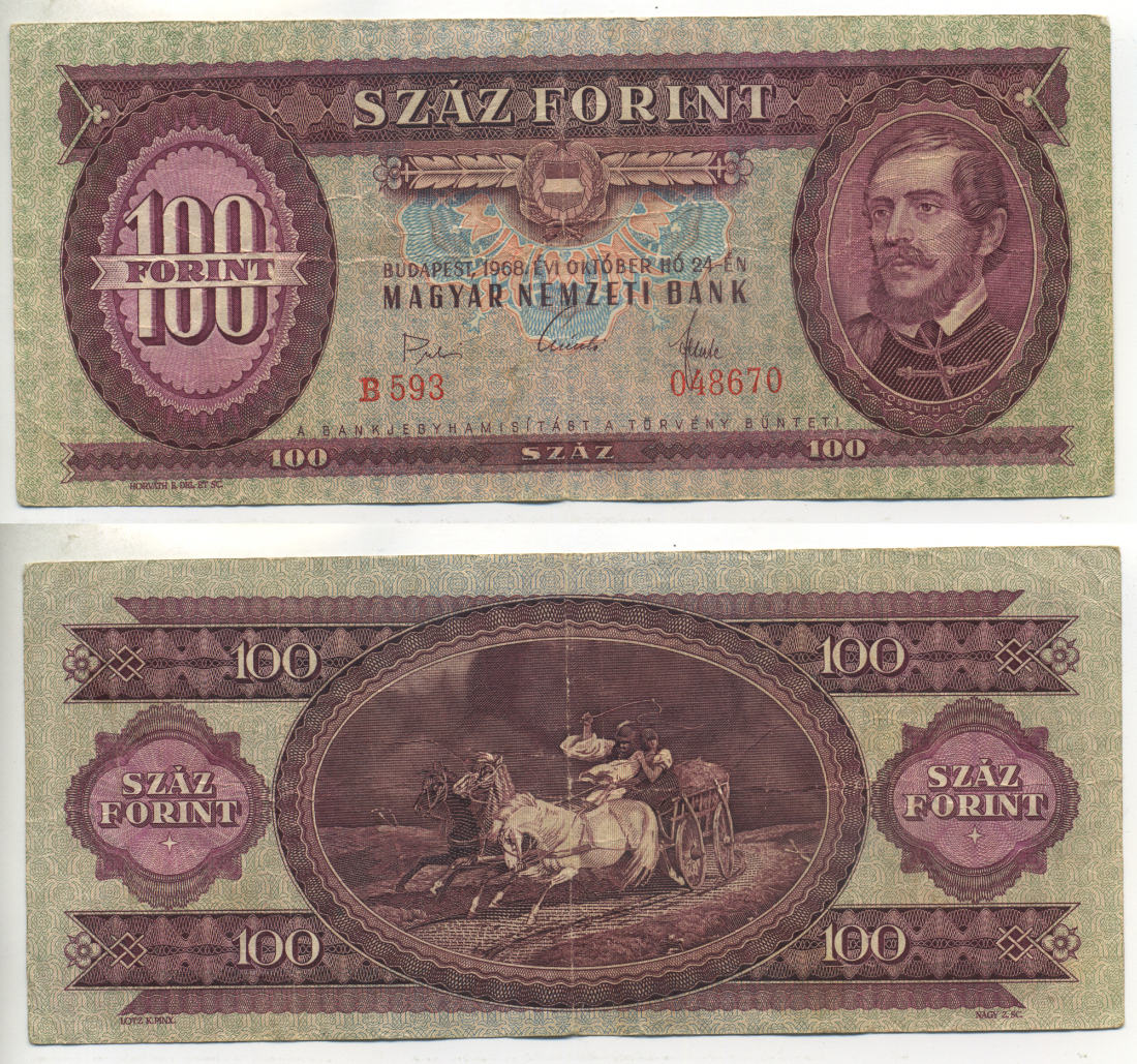Венгрия 100 форинтов 1968 24 октября 1968, Лайош Кошут Pick 171 d бумага 450-58-1-1