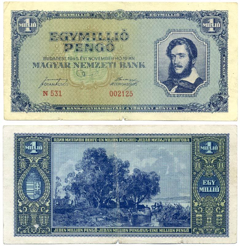 Венгрия 1000000 пенго 1945 Лайош Кошут, на берегу озера Балатон Pick 122 a бумага 435-19-2-2