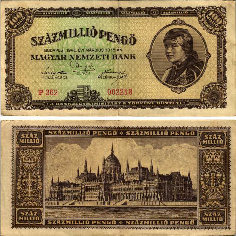 ВЕНГРИЯ 100000000 ПЕНГО 1946 18 МАРТА 1946 Pick 124 бумага 7205-23-3-2
