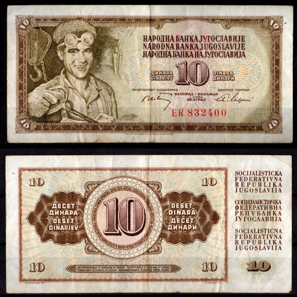 Югославия 10 динар 1968 Pick 82 a бумага 7217-20-1-1