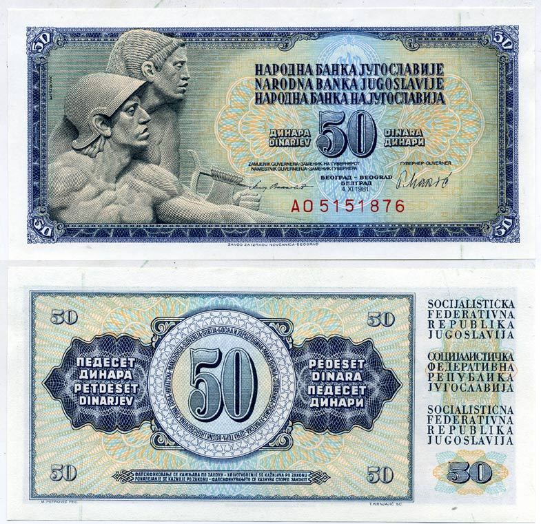Югославия 50 динаров 1981 барельефы Мештровича Pick 89 b бумага UNC (пресс) 435-40-1-2